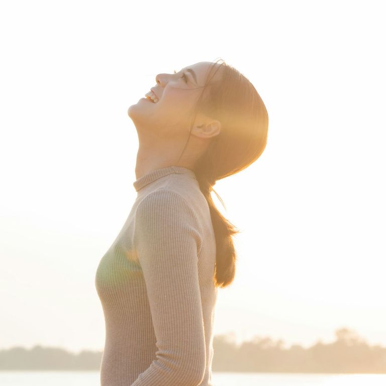 Halte dein Gesicht einen Moment der Sonne entgegen.